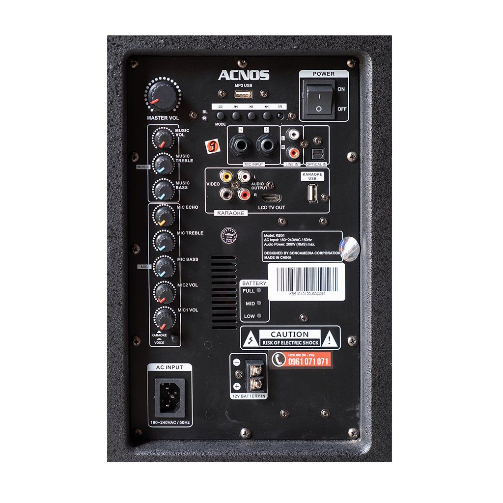Dàn âm thanh di động ACNOS KB51 tích hợp đầu karaoke Wifi bên trong chứa sẵn hàng chục ngàn bài hát từ USB và ổ cứng HDD, không cần internet. Tự phát Wifi Hostpot cho 8 thiết bị điều khiển, chọn bài và xem video cùng lúc qua ứng dụng Karaoke Connect.