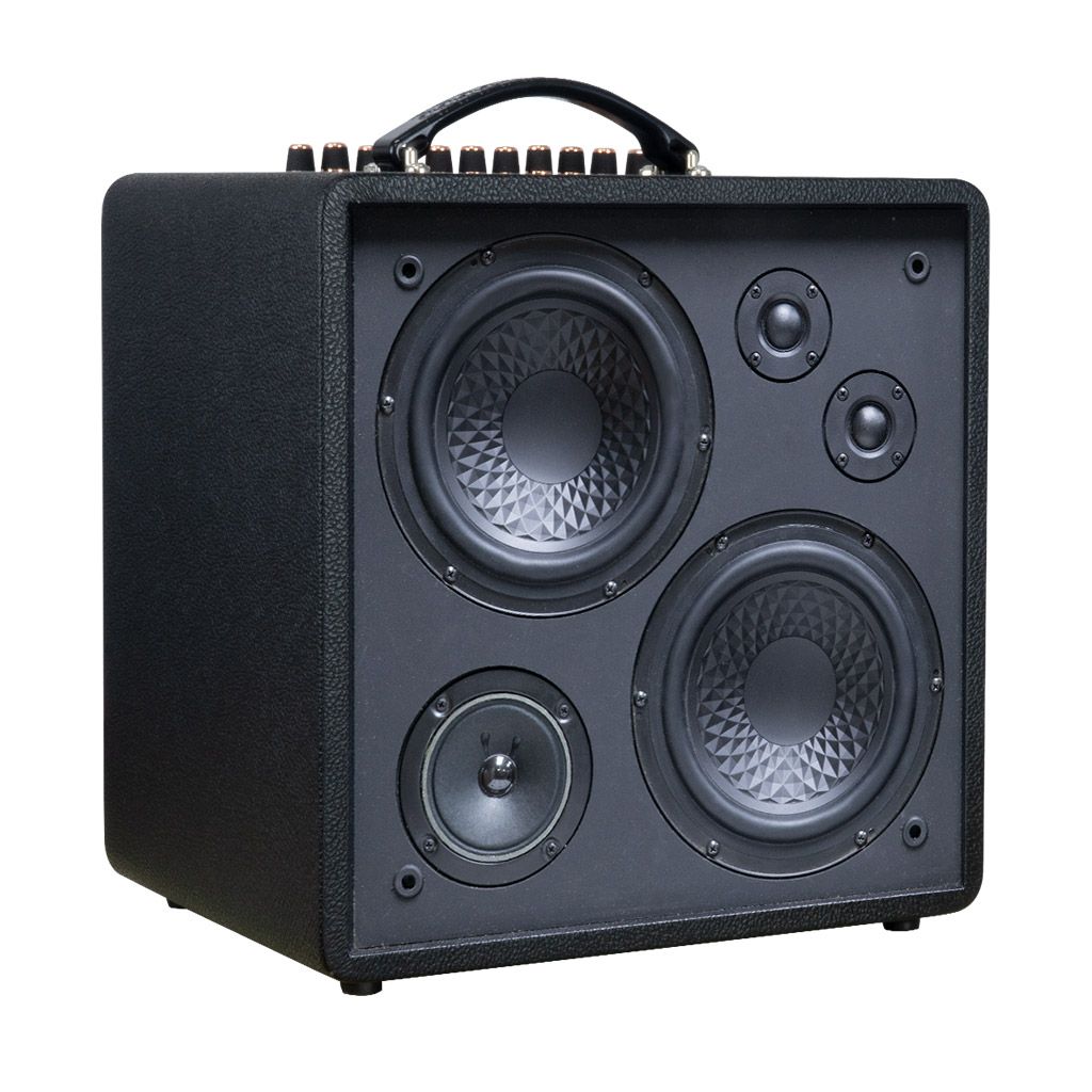 Dàn âm thanh di động ACNOS QUAD 64 Ver2 với nhiều nâng cấp vượt trội để phục vụ tốt nhất cho mọi nhu cầu ca hát nhưng yêu thích sự nhỏ gọn. Với chất liệu thùng gỗ bọc da đen cổ điển, màu lưới đen sọc nâu, đi kèm theo quai xách lại càng khẳng định tính di động của QUAD 64 Ver2. Mặc dù loa có kích thước nhỏ gọn nhưng lại có công suất ra 180W RMS cùng chất âm mạnh mẽ. Bởi QUAD 64 Ver2 được trang bị tới 5 củ loa, trong đó có 2 loa FULL 16cm (tương đương 6.5 inch) và 3 củ loa TWEETER (treble).