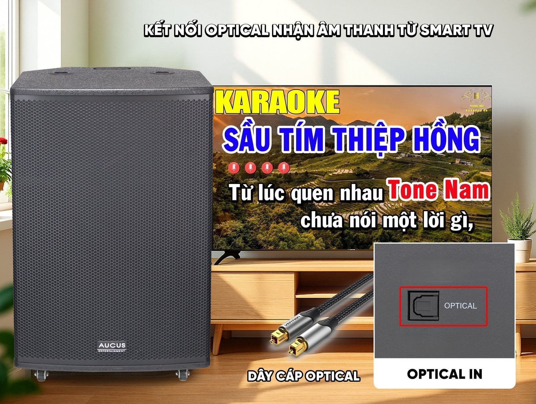 AUCUS AK1000S được trang bị cổng kết nối OPTICAL để nhận âm thanh trực tiếp từ smart TV, dễ dàng kết nối và hát karaoke trực tiếp với màn hình TV có sẵn tại nhà.