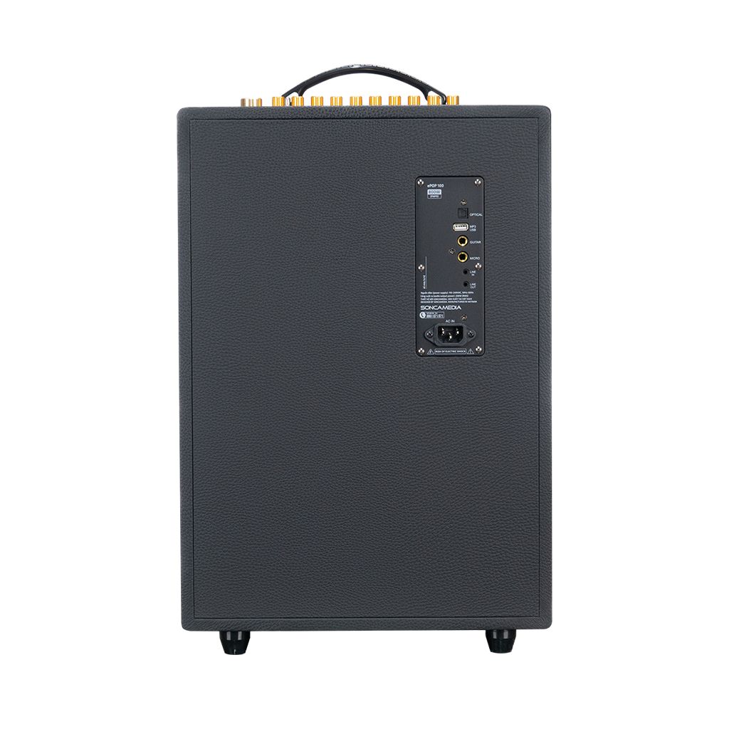 ePOP 100 là dòng loa karaoke di động mới nhất từ Soncamedia được tích hợp chức năng Boost Bass khuấy động tiệc vui với chất thanh mạnh mẽ với công suất 200W (RMS). Với hệ thống 8 loa trong 1 gồm: 4 loa FULL 16CM (6.5") kết hợp cùng 4 loa TWEETER (TREBLE). ePOP 100 đi kèm 2 micro nhôm UHF cao cấp, nhẹ hơi và dễ hát. Tích hợp Bluetooth 5.0 giúp kết nối nhanh hơn, tiết kiệm năng lượng và tăng phạm vi kết nối. Bluetooth 5.0 có tốc độ truyền dữ liệu lên đến 2Mbps, gấp đôi so với Bluetooth 4.2 trước đây.