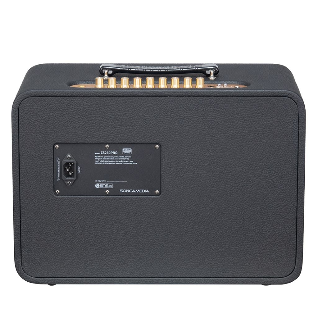 Loa karaoke xách tay SONCAMEDIA CS250PRO là một thiết bị âm thanh đa năng để hát karaoke, nghe nhạc, tích hợp vang số và soundcard. Thiết bị có thể hỗ trợ bạn hát live, karaoke, ghi âm, podcast, học online hay hội nghị trực tuyến một cách dễ dàng và chất lượng. SONCAMEDIA CS250PRO có các cổng kết nối sau: